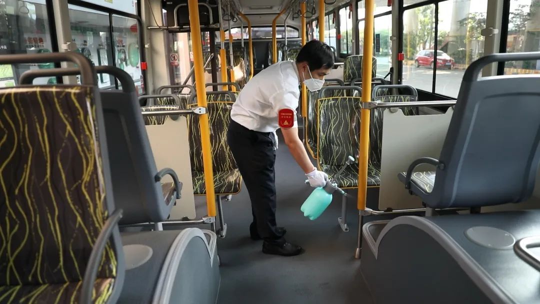 距离发车时间还有一个小时,上海市劳模、49路驾驶员孙杰就已经到达漕溪路公交枢纽内,进行出发前的准备工作。今天是上海跨区公交线路逐步恢复的第一天,按照疫情防控要求,孙杰佩戴好了N95口罩及防护手套,在发车前进行“预防+常规”的全面消杀,并贴好了今日已消毒的告示。