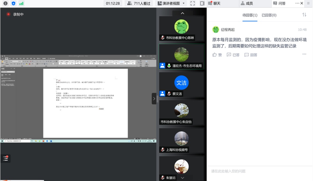 互动答疑环节,专家就“排污许可证变更申请和提交”、“企业复工复产排污许可自行监测”等具体问题,为大家进行了进一步解答。