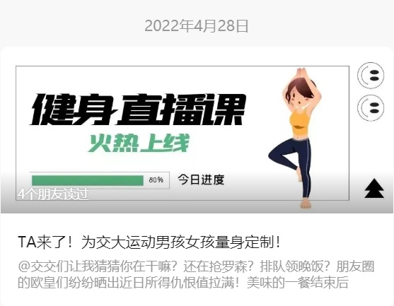SJTU科学运动直播还在火热进行中,这里有冠军团队为你做私教,周一、周三、周五晚间八点半准时相约。赶快跟着直播动起来,收获最简单的快乐吧!