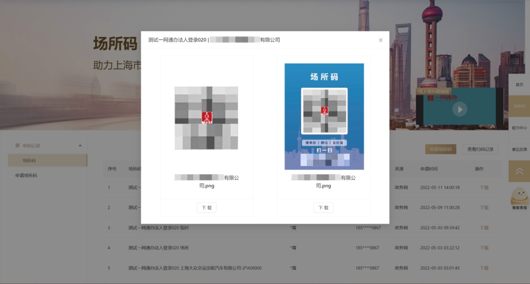 第三步:单位信息核验通过后,用户点击“我的记录”,可以查看本人申领的“场所码”记录和本单位的“场所码”申领记录,可选择下载。