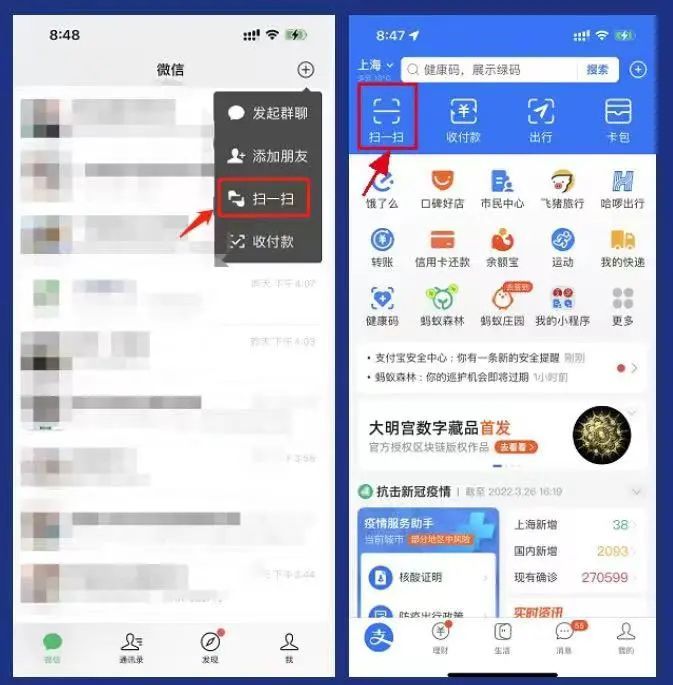 市民进入公共场所和居民小区时,通过“随申办”移动端(APP、小程序)或微信、支付宝的“扫一扫”功能,扫场所张贴的“场所码”。