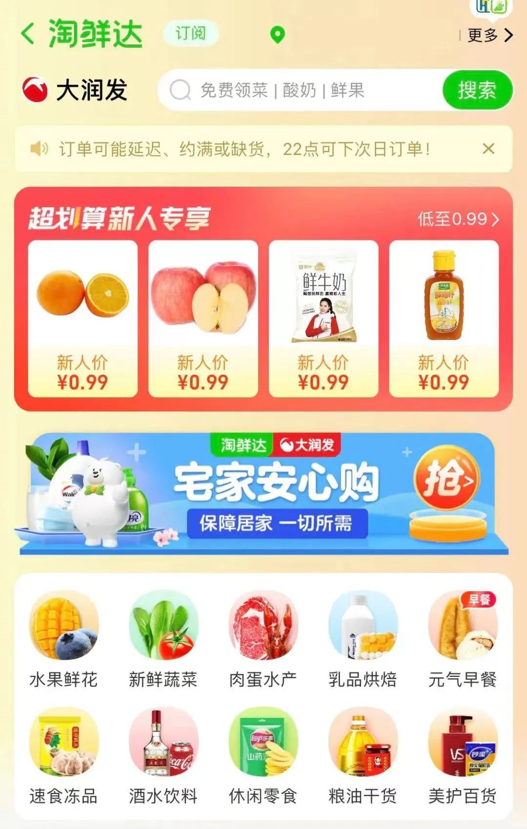 只要周边有家乐福门店显示营业中的话,打开超市APP就能集单,30单起送,直接联系团购也是可以的,只是东西不一定全,运力也可能不足,建议家中“补给告急”小伙伴们慎重选择。