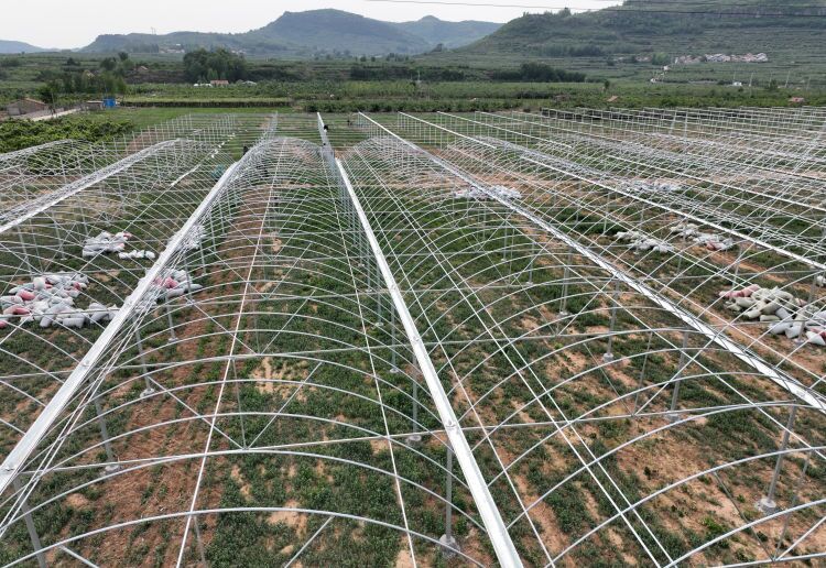淄博市沂源县东里镇东安村,一棵棵“宝贝”正在肆意地享受着初夏灿烂的山间阳光,这些宝贝就是东安城葡萄园示范基地项目引进的葡萄新品种“阳光玫瑰”,而就在路对面,为它们搭建的大棚正在快速施工。