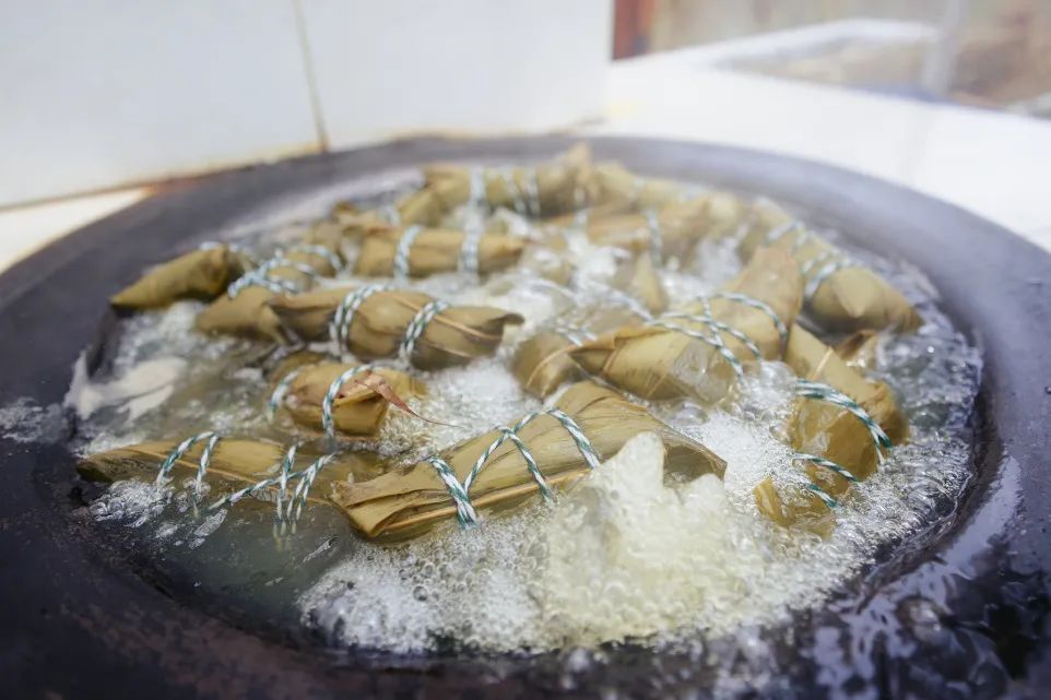 与别处不同,迎龙村制作粽子时,坚持用柴火与土灶烹煮,虽然速度会降低,但煮出的粽子更加风味十足。