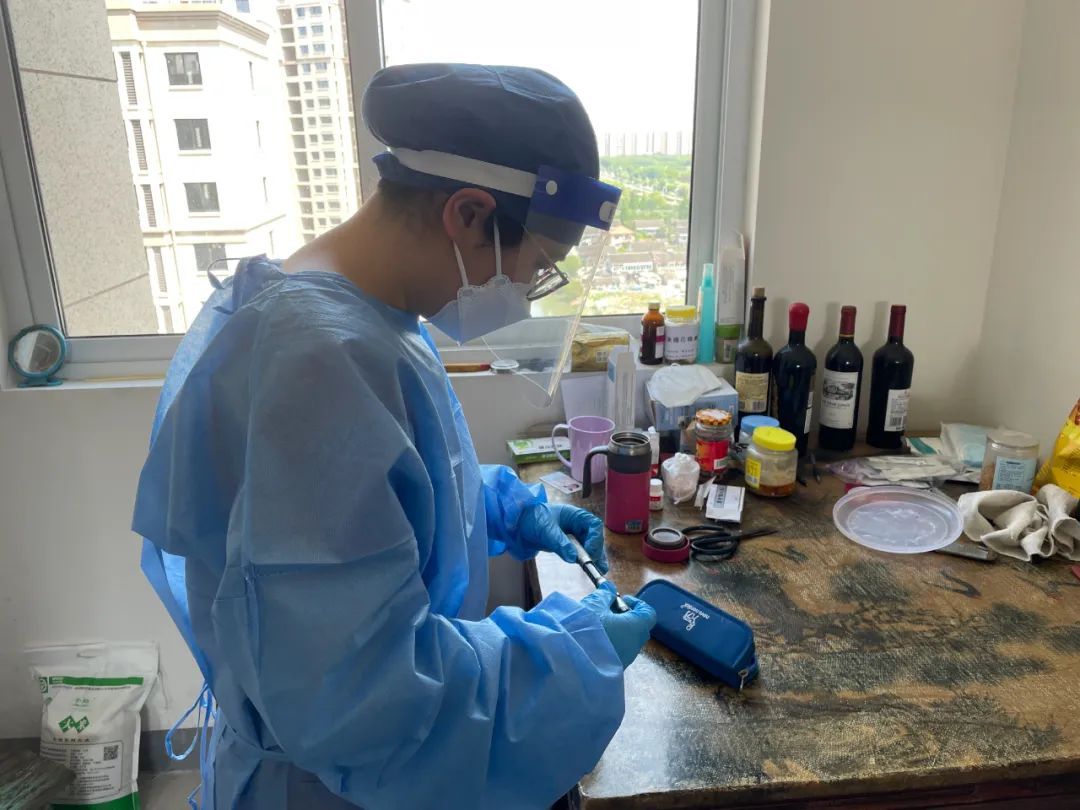 “很难想象,他刚挂完水,穿着人字拖走了将近4公里。”提起5月7日那晚,负责就医的社工张猗记忆犹新。当天下午,在新建的秋竹坊小区6号楼1001室装修的工人何汉涛来到筹备组求助:他咳嗽多日,并感觉喘不过气,身体很虚弱,希望去医院就医。张猗了解情况后,决定自驾立即送他去医院。经诊断何汉涛得的是肺炎,需挂水消炎,大概需要三四个小时,张猗让他快结束时提前联系。