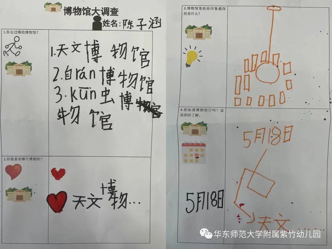 华师大附属紫竹幼儿园的孩子们在活动前开展了一场“博物馆大调查”。