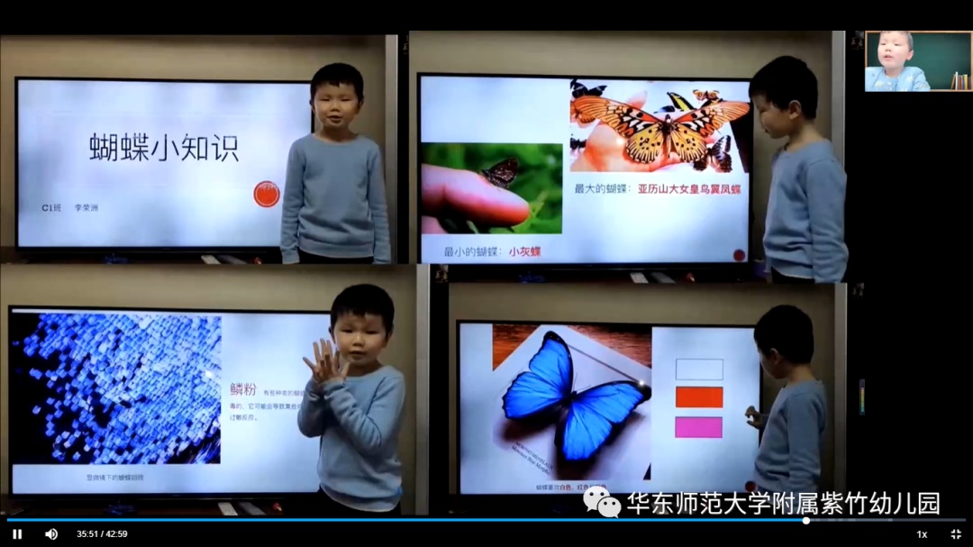 在此期间,幼儿园联合上海科技馆、上海自然博物馆和上海辰山植物园开展了3场线上直播,用特别的方式,带领因疫情居家的孩子们一起“云看展”。