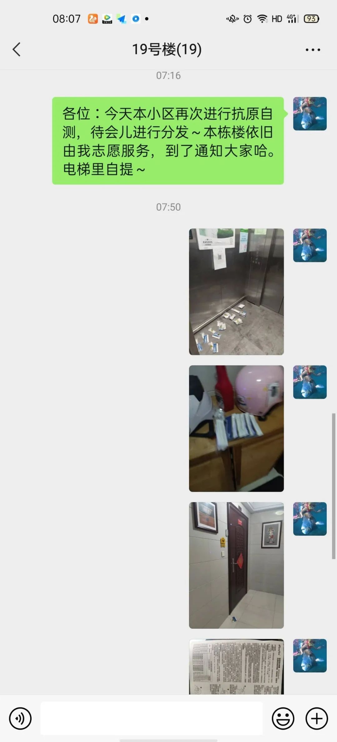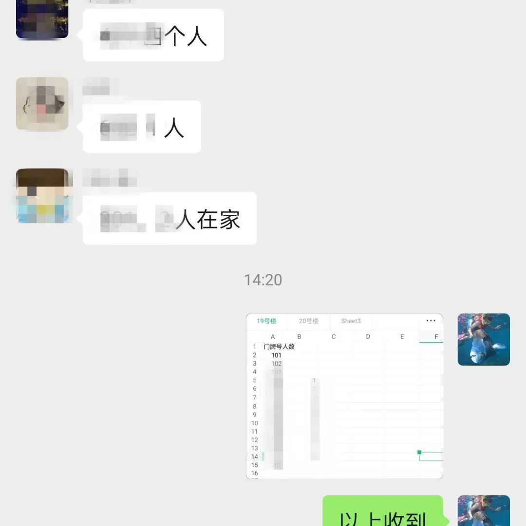 建立楼栋微信群,高效;想办法减少接触,安全。今天统计清楚了实际居住户数及人数,并顺利发放、确认抗原自测试剂盒和结果。
