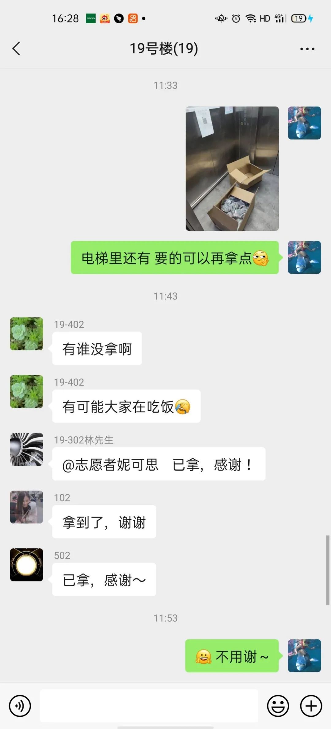 带好手套,开始搬搬搬,在"底数清”的基础上,今天两栋楼的物资发放非常顺利。