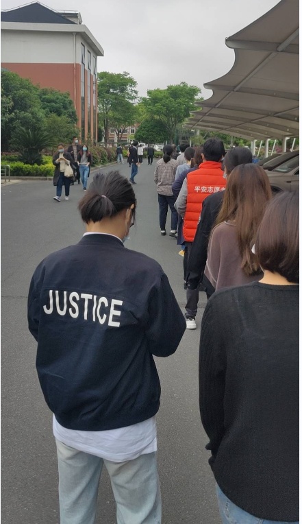 做完村里志愿服务,再轮到自己排队去做核酸。多重角色的转换,让感受体会更深入,换位思考更细致。要站在群众的角度思考问题,不能脱离群众,捅鼻子麻烦轻一点……