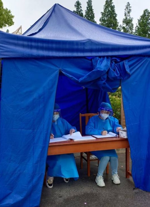 回望3月以来,暂别家庭,将四岁的萌娃托付给老一辈,从志愿到下沉,做华亭镇多个核酸检测点引导员、镇域内首个封闭管理区专班信息员;从街镇到社区,做封控区居住地的报到党员志愿;从外场到内场,返岗作毛桥村抗原、保供、道口“小蓝”、大筛查和常态化核酸检测点“大白”,我成为了千千万万个在上海抗疫一线工作人员中的一个。