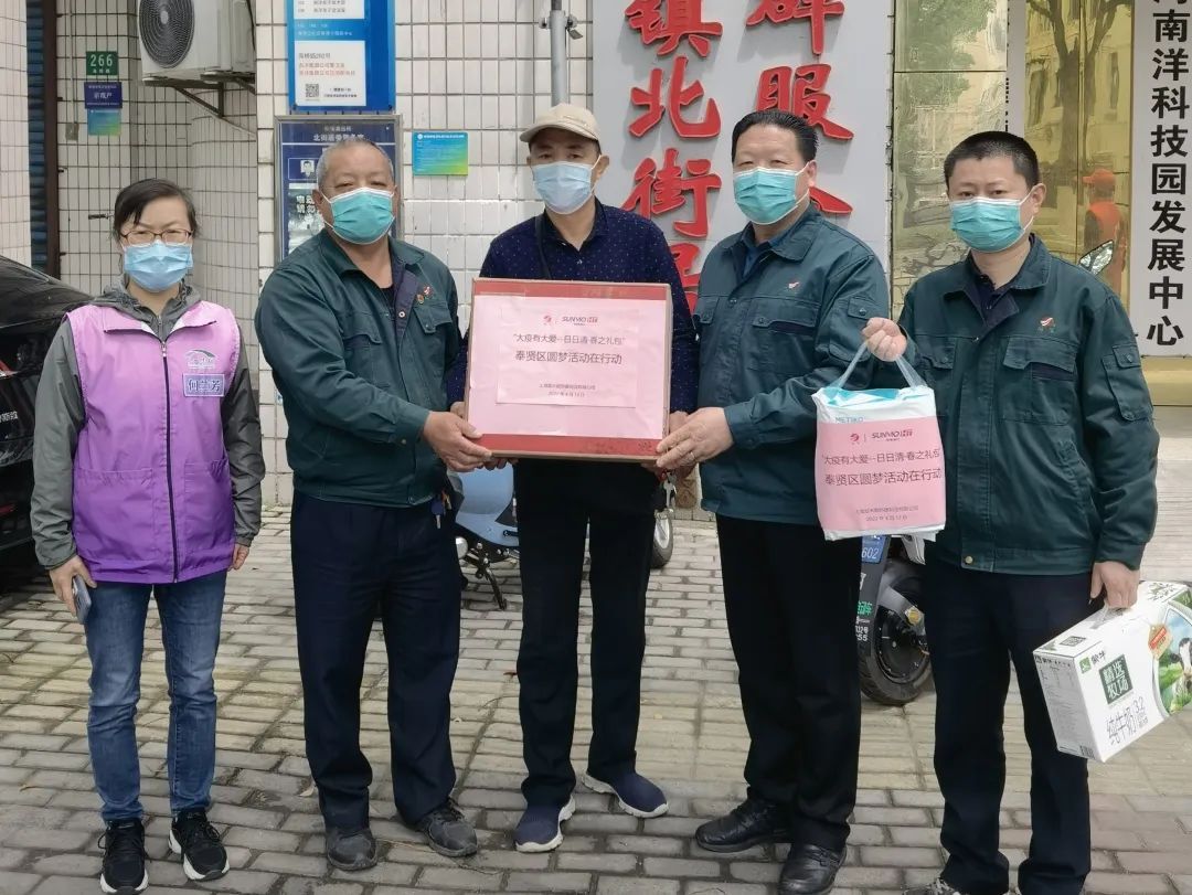 在今年这场特殊的疫情冲击下,奉贤区举行专场“大疫有大爱·圆梦行动”并得到了社会各界爱心人士的广泛关注。公司在“疫情攻坚和安全生产”两手抓的同时,也持续关注受到疫情较大影响的困难群众,努力为他们雪中送炭,缓解困难。作为市级文明单位,公司第一时间认领了两个梦想,汇集各方采购资源,及时赶在断货前将紧缺的婴儿奶粉和成人尿布送到2个困难家庭手中。在无情的疫情之下,传递温暖、播撒爱心。