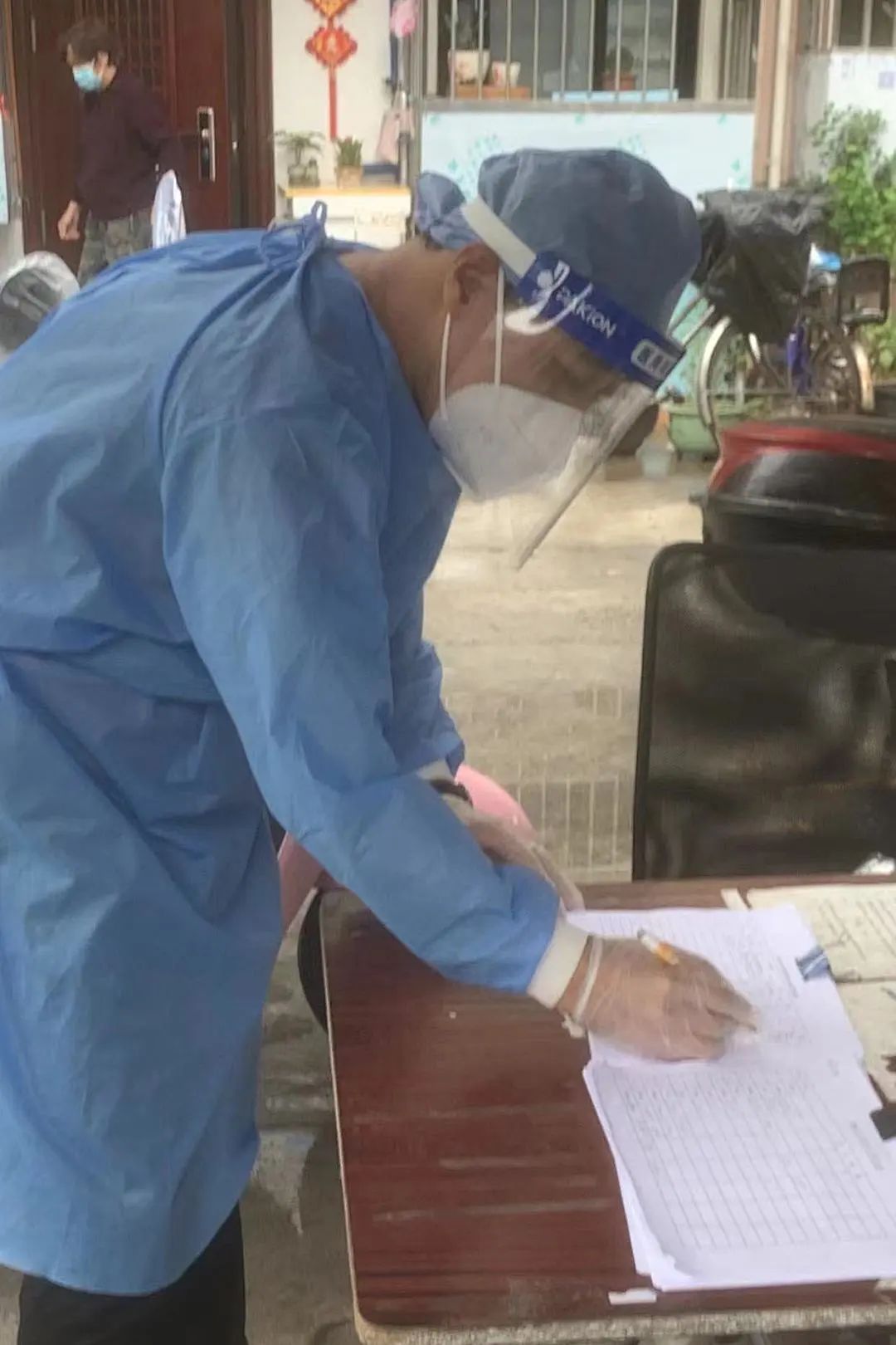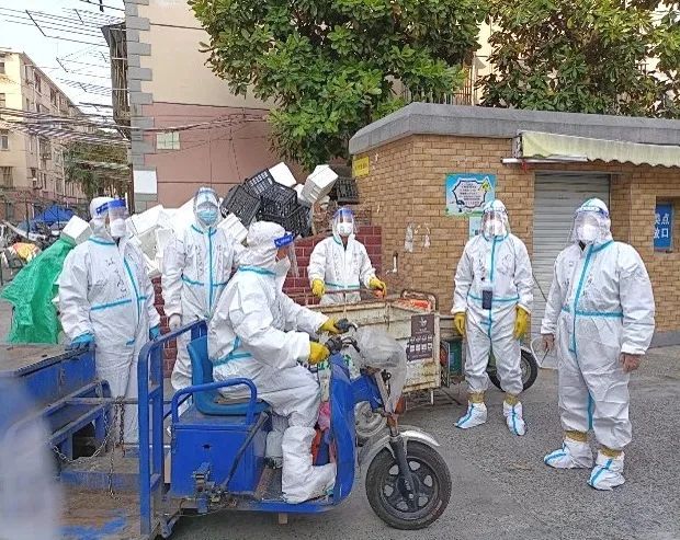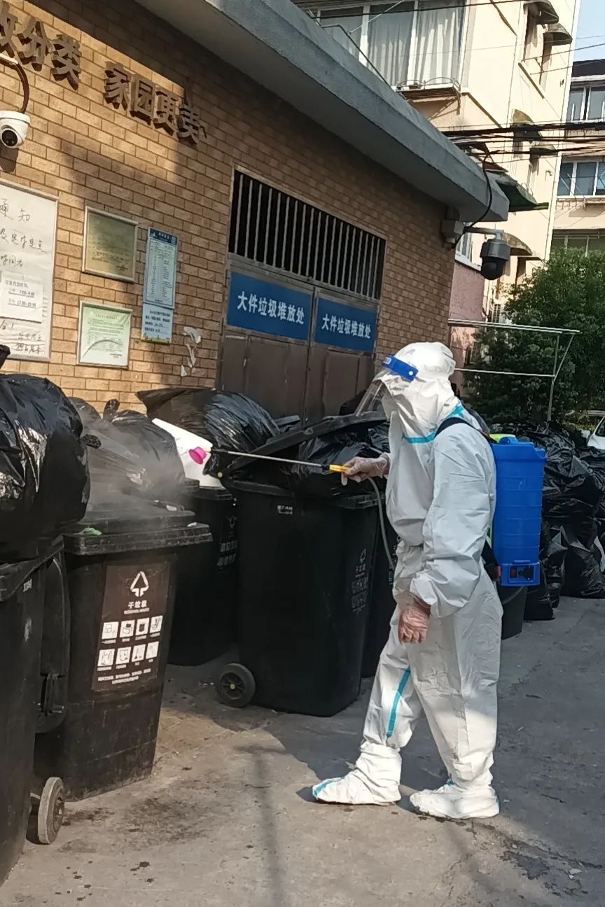 小区3200多户6000人以上居民封闭期间的环境清洁、垃圾清理工作就由他们5人和本小区仅剩的戴明贵保洁员统统承担下来,他们在127个楼栋的门口都放置了垃圾桶,定时定点收取放在门洞的生活垃圾,沿途清理残留在绿化带和街坊道路中的垃圾包,并且还承担起来自阳楼清理出来的各类垃圾并进行消毒驳运到指定的堆放点。