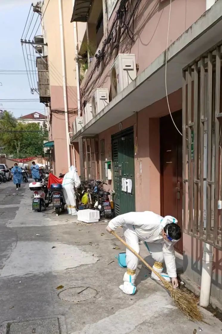 但是,突如其来的紧急情况又一次考验了控江五村的物业人。原本住在小区里的7名保洁主力军由于有6人因居住的同一楼栋内出现阳性患者,而被封控无法正常工作。但偌大的小区不能只有一个保洁员工作,可疫情期间,各个小区人手都十分紧缺,这下怎么办?