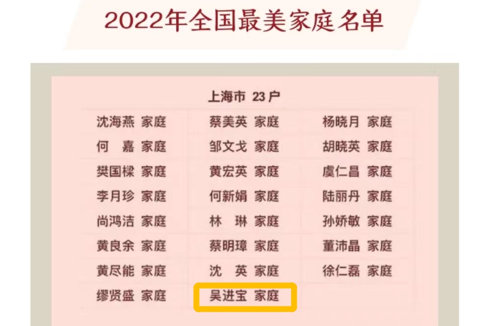近日,全国妇联表彰揭晓“全国最美家庭”997户,奉贤区青村镇吴进宝家庭光荣上榜。