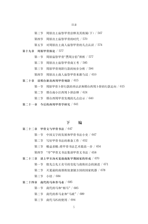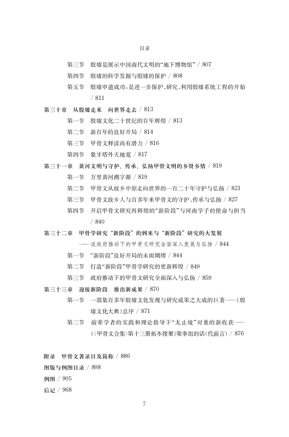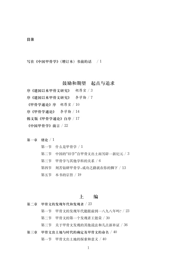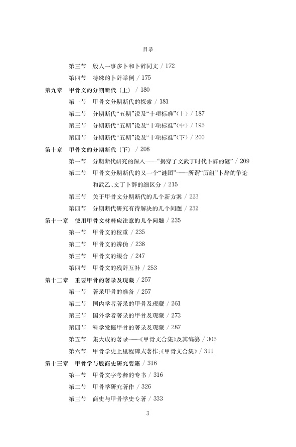 相比2009版,增订本的内容更加详实,结构更加严谨、章节更加完善。但仅就笔者所见,增订本仍有几点可商榷之处。首先,在下编章节设置方面,不妨将二十八章提前一章,使整编甲骨文书法、甲骨文殷商史、殷墟与甲骨文发掘发展史三方内容分布更加合理,章节更加紧凑。其次,内容方面,第二十七章“殷墟发掘与中国考古学”一章,其第一节、第二节内容多有重复,不妨将两节内容合并。最后,附录方面,2009版附录有《甲骨学大事记》,详列了从1899年至2008年9月甲骨学研究所出专著及研究动态,为学者提供了方便,而增订版却未罗列2009年至2021年的书目与研究动态,实乃遗憾。