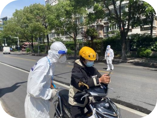 局党组坚决发挥党建引领作用,主要领导亲自挂帅,加强组织指挥和统筹协调;班子成员按照分工,沉到一线助力拔点攻坚;机关干部进驻村居,与基层志愿者吃住在一起、战斗在一起;基层中队按照所在街镇党组织要求,尽锐出战、全力出击,筑牢疫情防控“蓝色屏障”。争当“抗疫主力军”,抽调精兵强将55人支援下沉10个重点涉疫社区,夯实一线防疫力量,助力开展核酸检测、物资配送、就医配药等抗疫工作2196次;当好“政策宣讲员”,在区局微信公众号开设抗疫宣传专栏,传达中央市委决策部署,宣扬抗疫先进事迹、典型做法,团结带领市民群众齐心抗疫;化身“病患摆渡人”,统筹协调力量,组建转运专班,转运阳性感染者和密接人员12646人次,在最危险的岗位上体现城管责任担当。