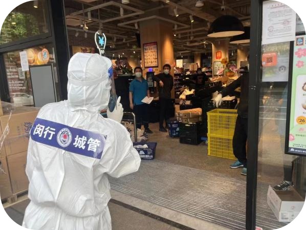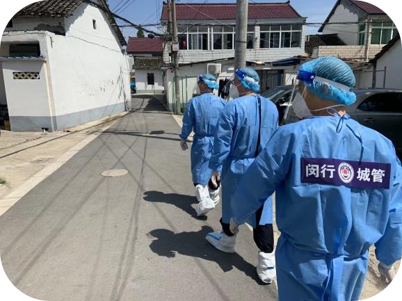 本次疫情发生以来,闵行区城管执法局党组在区委区政府领导下,按照市城管执法局工作要求,全员合力、上下同心,有序有力推动各项疫情防控措施落实落地。全体党员干部在街面疫情管控、环境消杀检查、涉疫人员转运的抗疫战场上奋力拼搏,用行动践行初心、用坚守诠释担当,全力维护人民群众的生命安全和身体健康,让“城管蓝”在抗疫一线闪耀光芒。