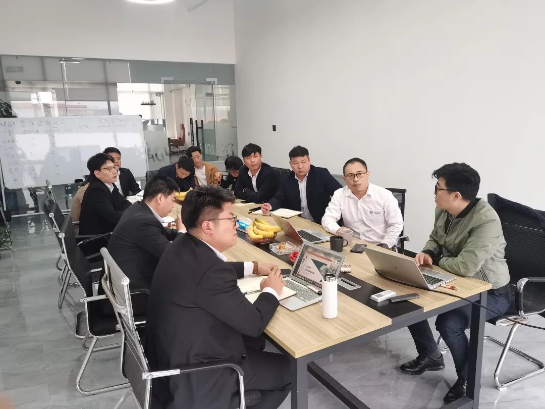 韩克栋与合作伙伴一起分析