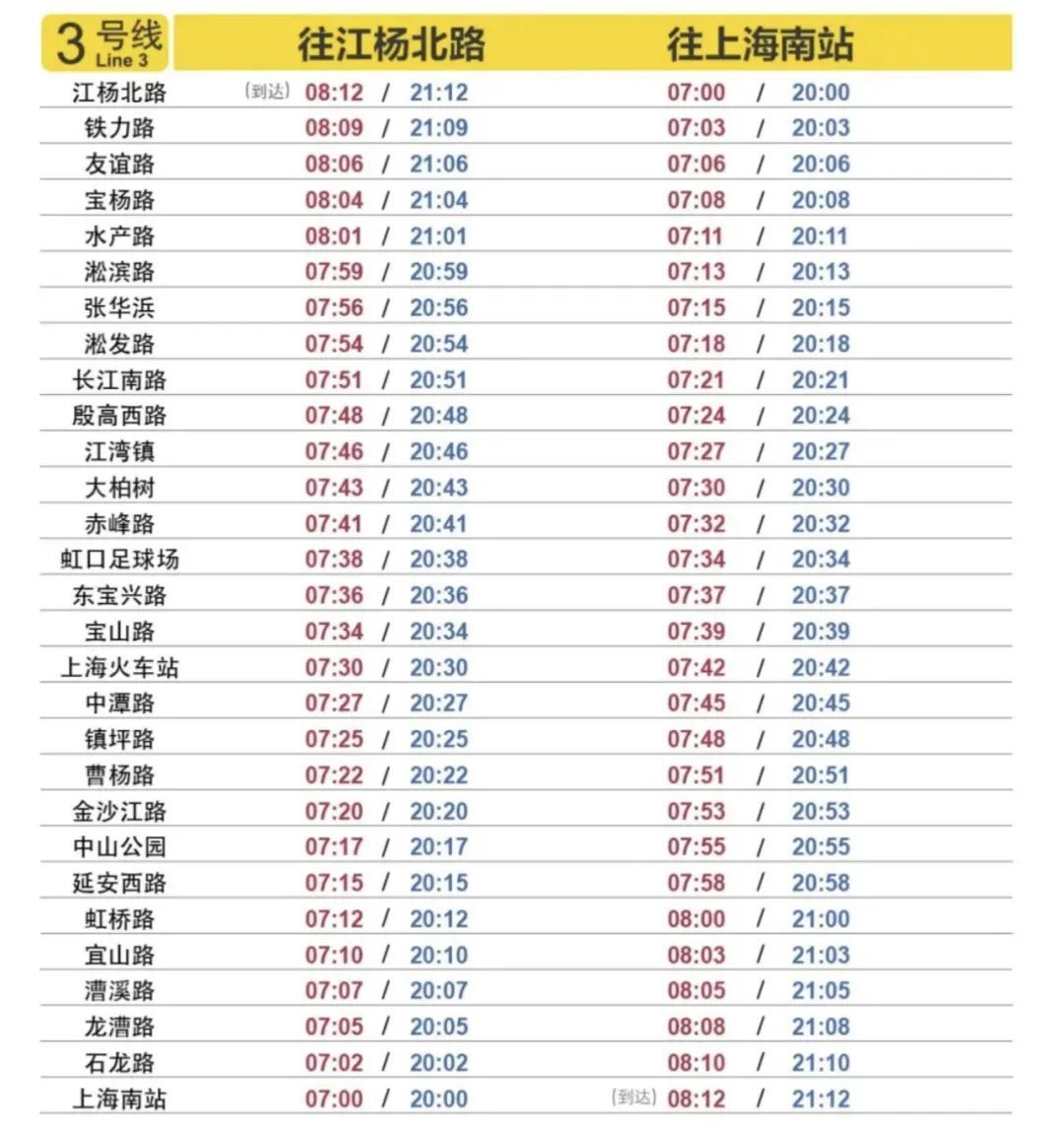前往上海火车站的旅客可以乘坐轨道交通3号线至上海火车站站。前往上海南站的旅客可以乘坐轨道交通3号线至上海南站站。前往虹桥火车站的旅客可以乘坐上海轨道交通10号线至虹桥火车站站。轨交3号线、10号线运营时段为7:00-20:00,期间,线路起讫站双向首末班车时间均为7点和20点,途经车站发车时间根据列车运行图顺延。