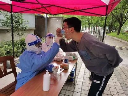 (在社区常态化核酸采样点进行采样工作)