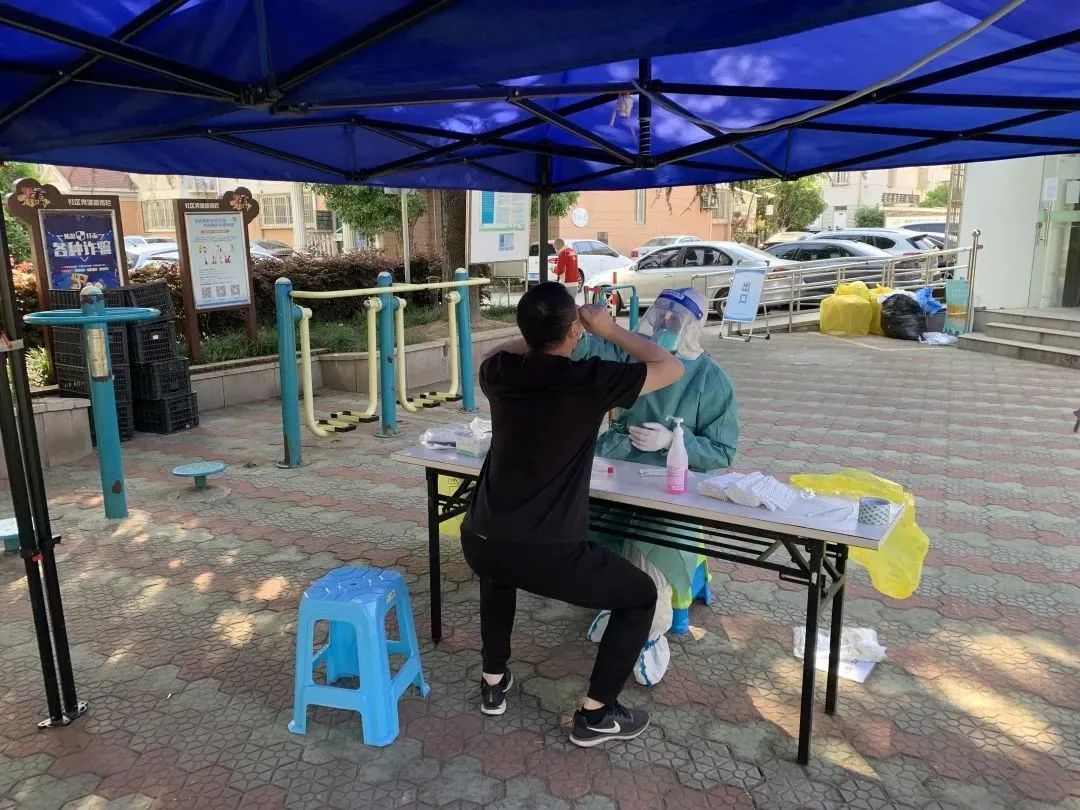 “书记,原来今天是你给我们做核酸啊!”5月24日,在嘉定镇街道丽景小区常态化核酸采样点,居民徐阿姨听到熟悉的声音后,认出了自家社区的党总支书记戴烨。在新一轮核酸检测的各常态化采样点上,一批像戴烨一样的“老熟人”上线。