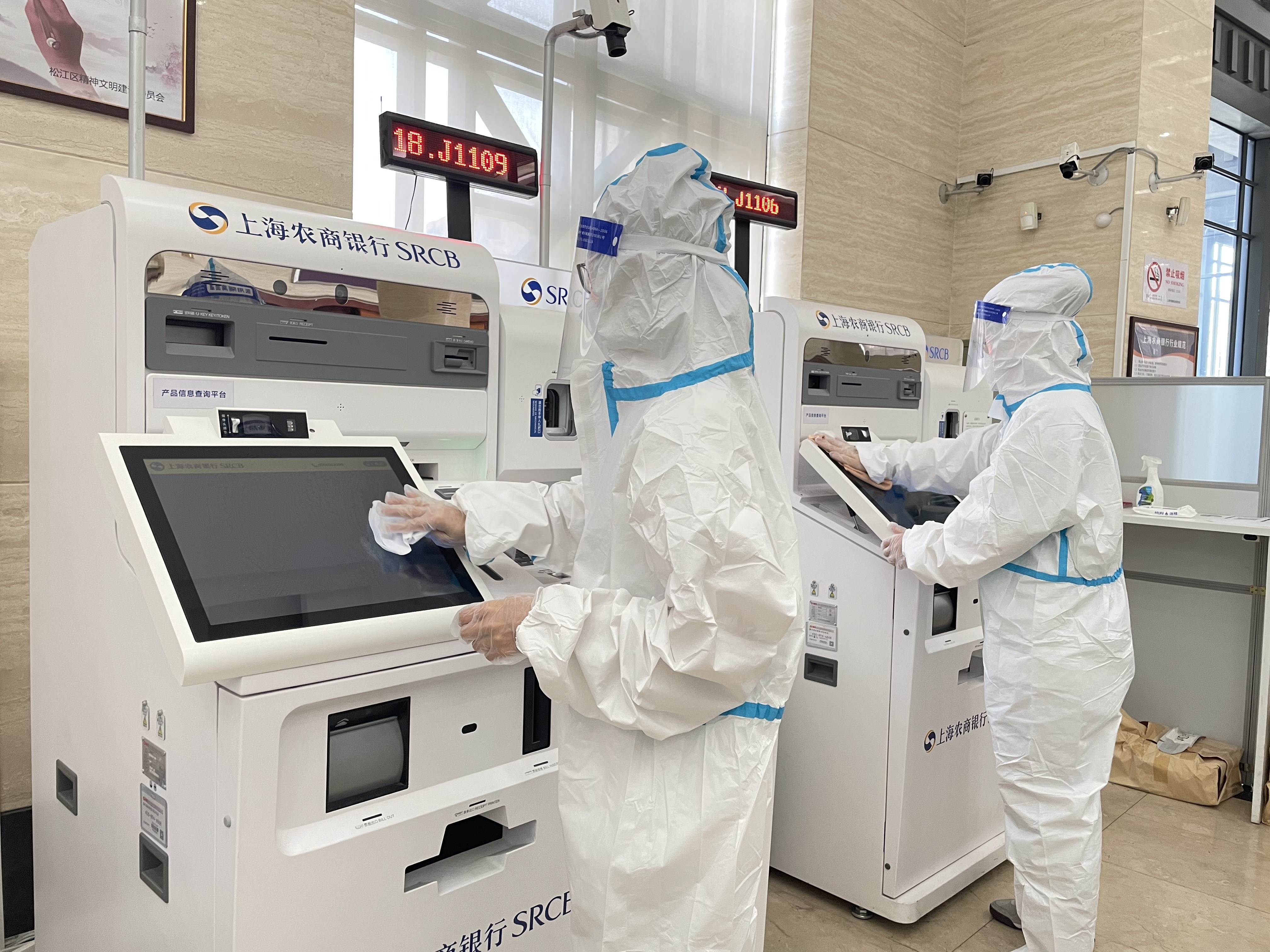 据悉,为切实保障防疫安全,在恢复营业前,各银行网点对环境及所有机具设备实施了全面消杀。“恢复营业后,我们每日早、中、晚分三次对大厅进行整体环境消杀,对于柜台台面、密码键盘、座椅扶手、自助设备等客户经常接触的重点区域设备也会每2小时开展一次清洁消毒,并做好台账记录。”中国农业银行松江城区支行相关负责人告诉记者。与此同时,各复工营业网点在岗员工均纳入网点闭环管理,并参照城市保障人员每天进行一次核酸检测和一次抗原自测。