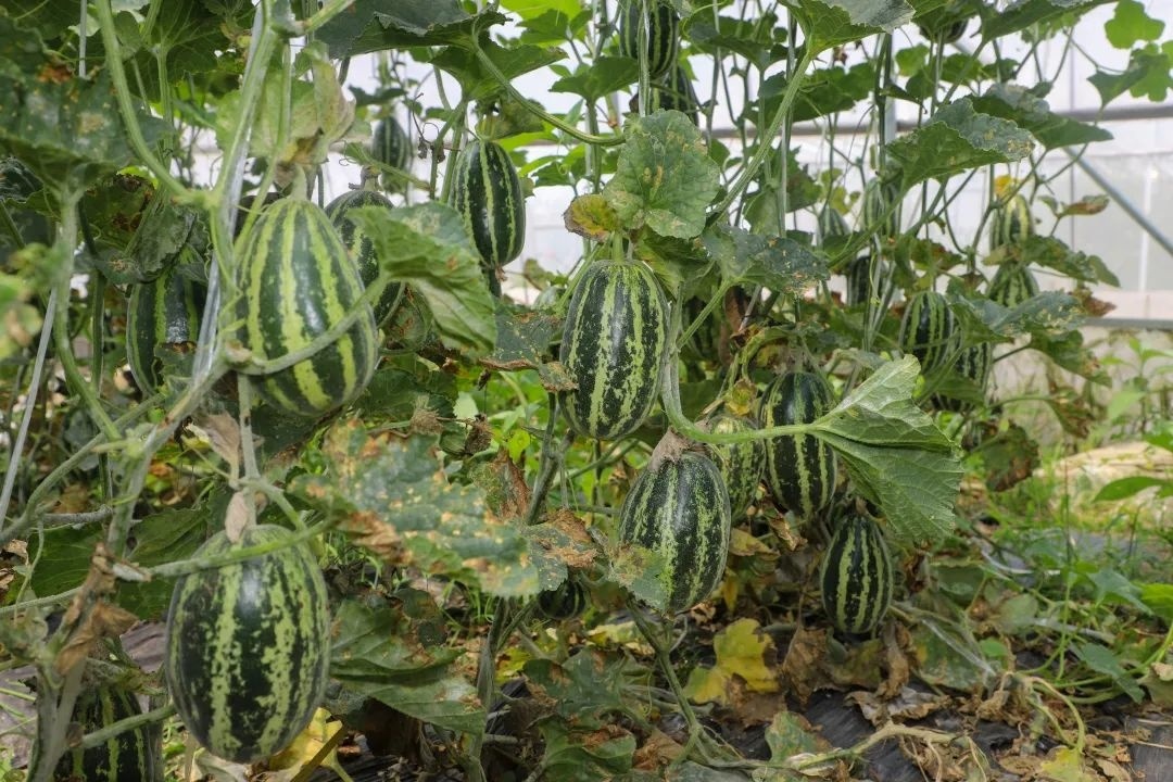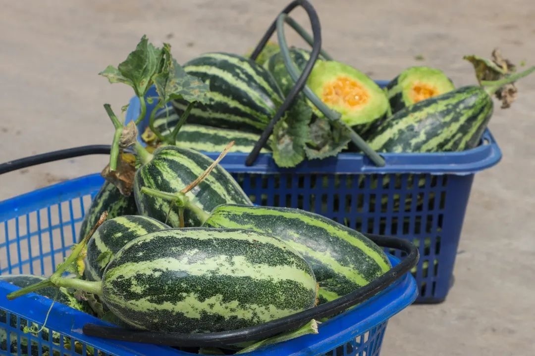今年合作社仅试种了两亩地,预计亩产在二到三千斤左右。虽然种植面积不大,但为了保证品质,一根藤上只保留了两到三个瓜。此外,博洋9号在种植方式上也十分讲究。