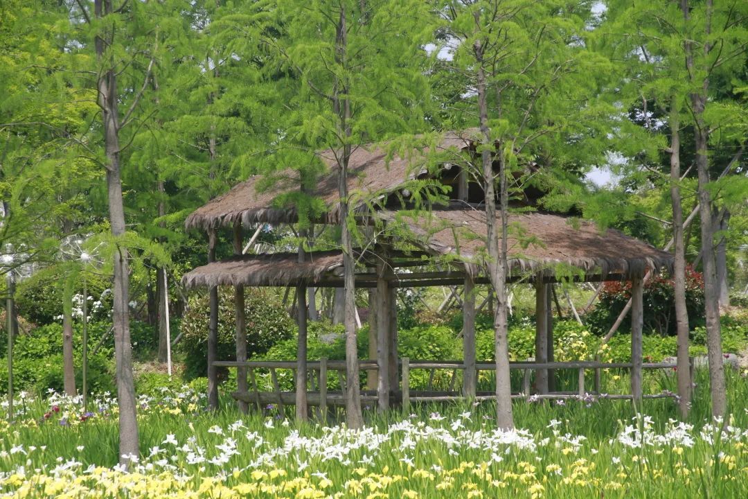 充满野趣的亭子掩映在池杉、落羽杉之中