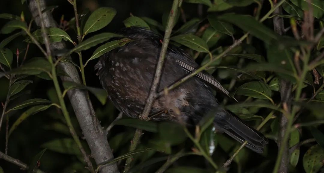 上海常见的2种本土鸟类,乌鸫和珠颈斑鸠在夜晚是它们休息的时候,需要抬头才能看到它们哦,栖在树枝上,安安全全过一夜。