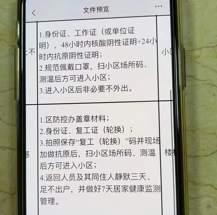虽然根据《上海市工业企业复工复产疫情防控指引(第二版)》,对复工人员回小区的已经做出了明确:封闭生产企业可以向所在区有关部门申请轮换已复工复产人员,相关人员可凭48小时核酸阴性证明,进小区前加测1次抗原,如阴性可回小区。