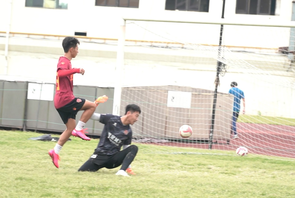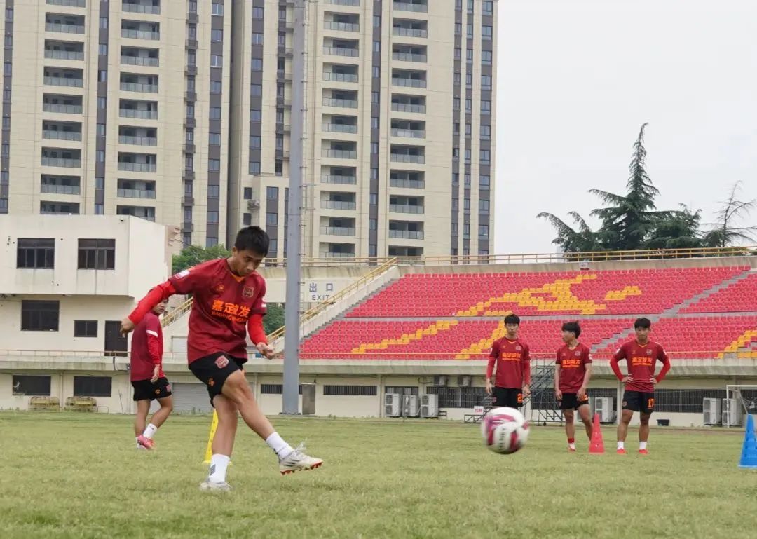 5月28日下午,在嘉定区体育局为上海嘉定汇龙足球俱乐部提供的训练场上,球员们全情投入,奔跑、射门、摔倒、站起来继续……一个多小时训练下来,大家满身是汗,但没有人喊停。