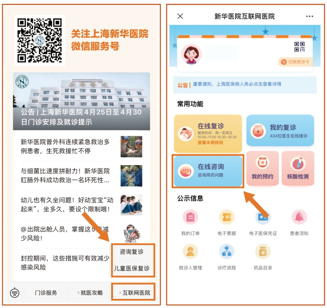 1、互联网门诊正常开放,5月21日起至6月底,新华医院互联网医院在线复诊每天开放,挂号时间为8:00-16:30。6个月内曾有就诊记录的人均可使用互联网医院在线复诊功能。药品物流仍然运力紧张,药品配送时限仍一周以上。急用药患者建议线下就诊,或选择到院自提服务(处方支付后的第二个工作日,14:00-16:00,至新华医院门诊综合楼1楼门诊药房11号专窗)。