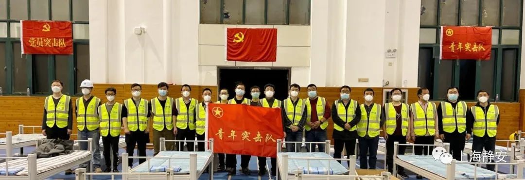 4月9日,静安区政府发出援建方舱医院的号召。我们迅速集结上海片区可出行的管理人员、工人50余名,经过58小时一刻不停的施工,按时完成了方舱医院的建设任务。