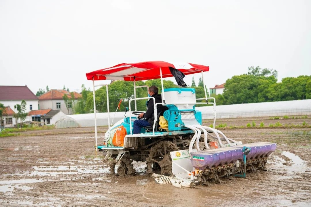 眼下,水稻种植进入“黄金期”。在金山区漕泾镇各水稻种植基地,农民们抢农时、忙耕作,到处是一片繁忙的景象。
