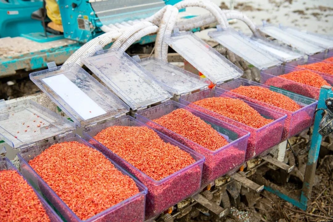 据了解,漕泾镇今年水稻种植面积约为9752.9亩,主要品种为秀水613、南粳46和申优28,国庆稻已播种96亩。接下来,漕泾镇即将进入常规稻的播种,预计6月中下旬完成全镇水稻播种面积。