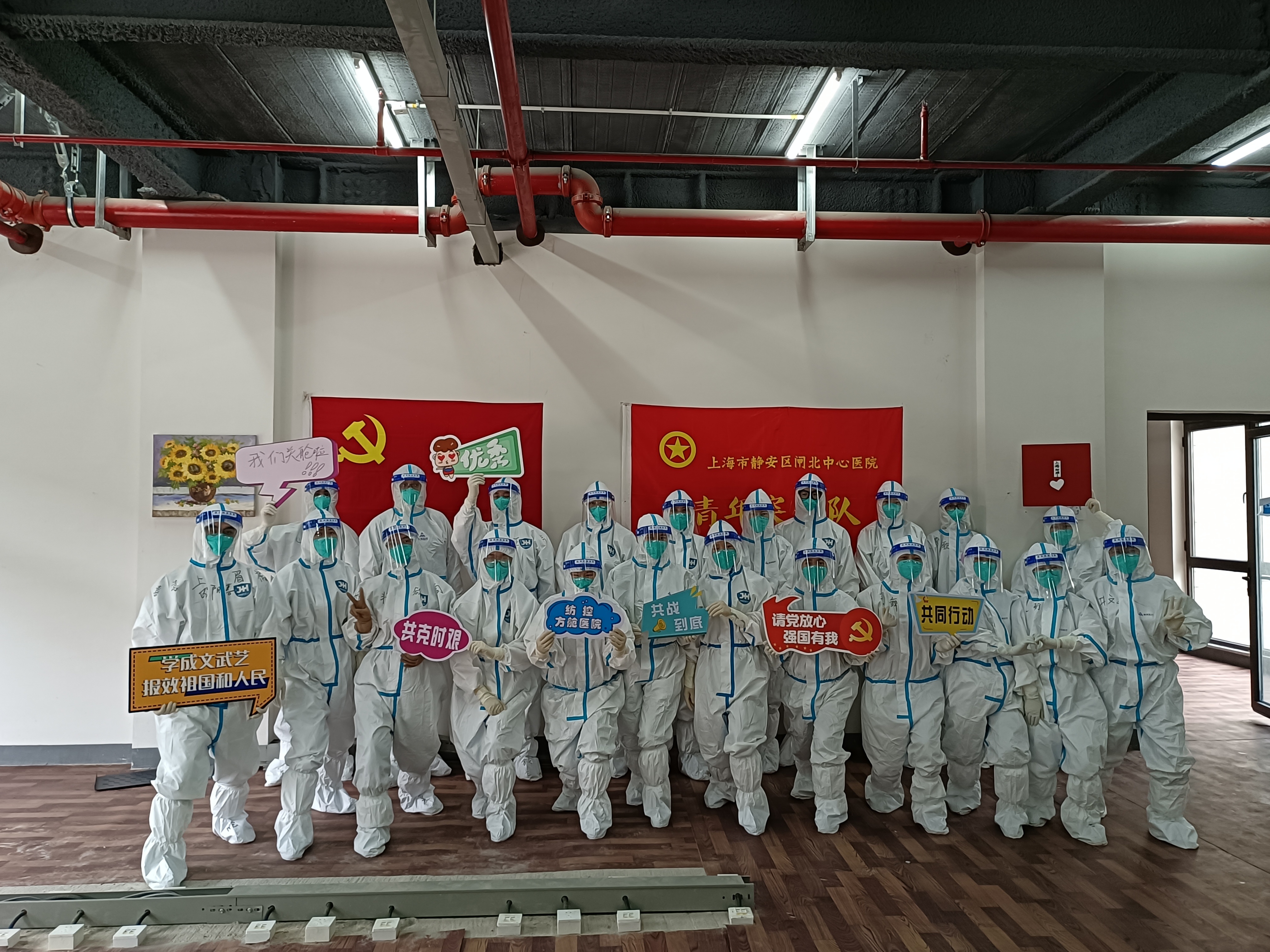 在这个没有硝烟的战场,纺控方舱临时党支部发挥战斗堡垒作用,党员们冲锋在前,不辞辛劳。指挥部、医护团队、后勤保障团队、现场公安团队共147名成员踔厉奋发,连续奋战,充分发扬了“越是艰险越向前”的战斗精神,彰显了勠力同心、命运与共的静安力量。