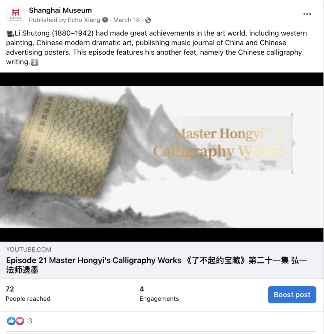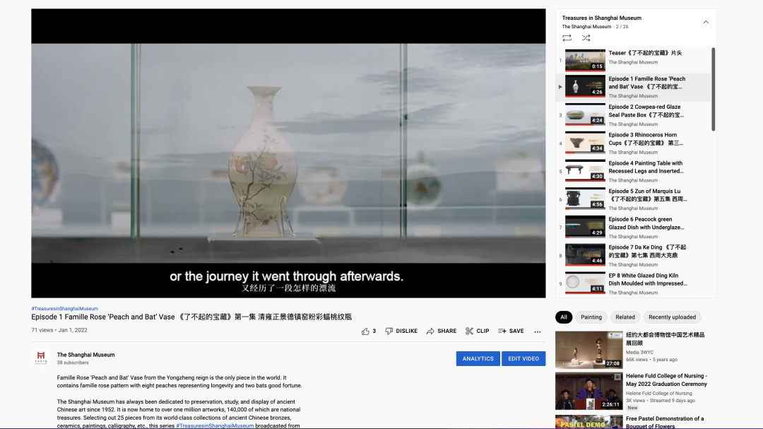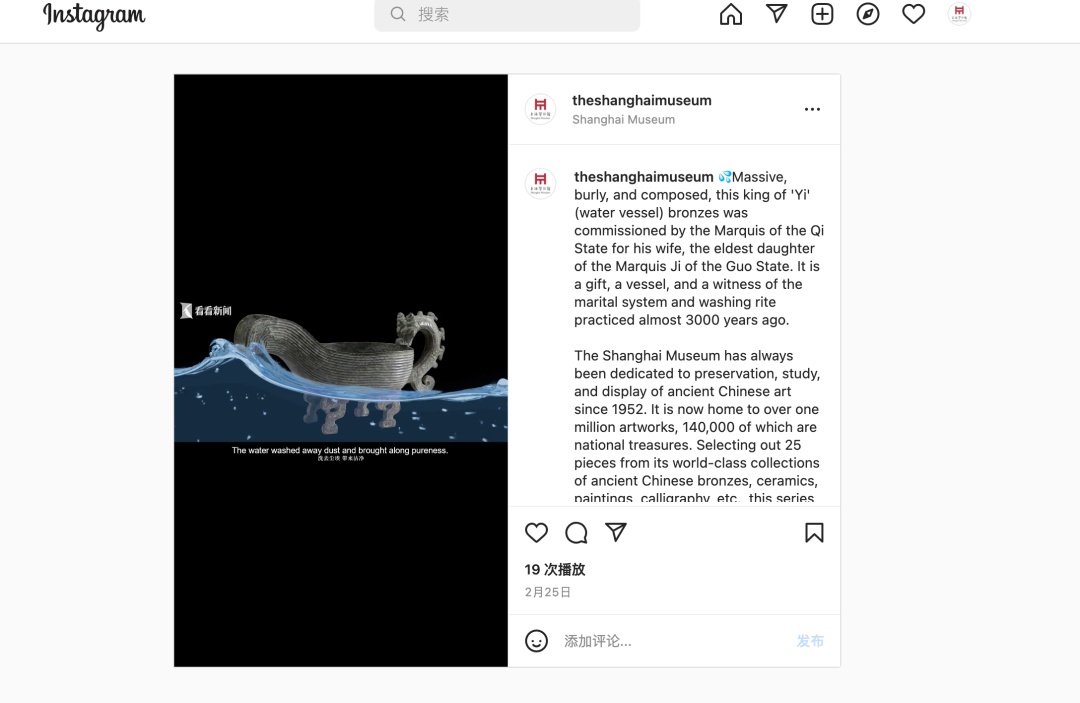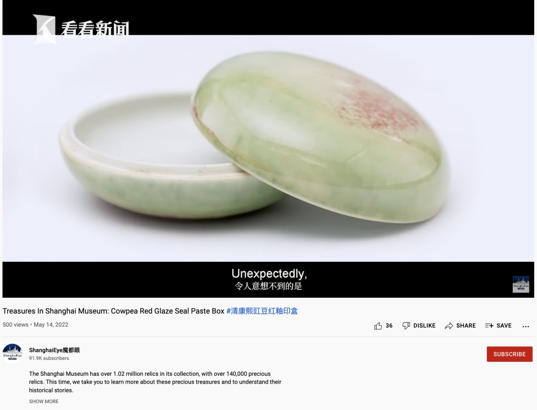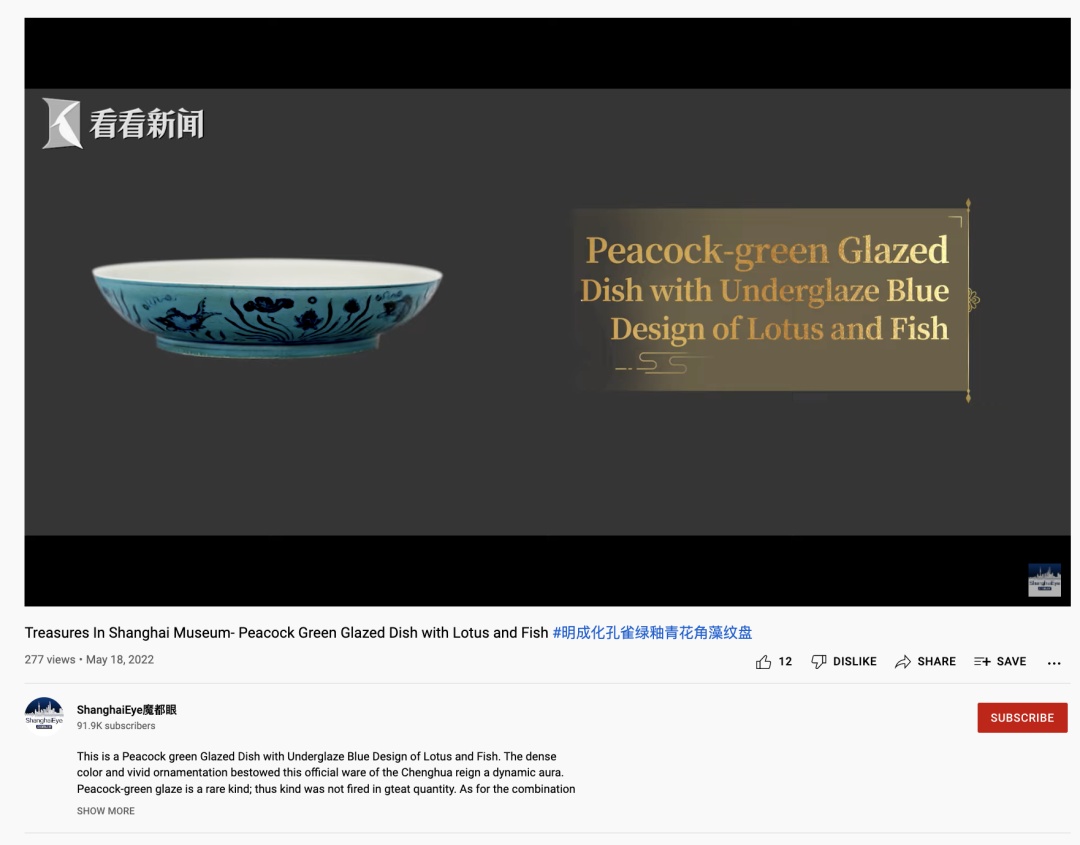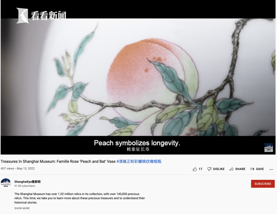由上海博物馆联合SMG融媒体中心策划的、聚焦上海文博资源的短视频作品《了不起的宝藏·探宝上博》第一季,在2021年播出之际就备受关注。而自今年1月起,《了不起的宝藏·探宝上博》陆续登录主流海外社交平台,上海博物馆海外社交媒体全平台(Youtube、Facebook、Twitter、 Instagram)每周2集推出、上海电视台融媒体中心新媒体产品海外播出平台Shanghai Eye魔都眼YouTube账号于今年5月13日起每天推出1集,目前相关平台播放量已近15万,预计25集总播放量将超50万。而在春节期间,美国哥伦比亚广播电台KCFJ570官网上的观看人次累计也超过90万,持续推动着中华文化的国际化传播。