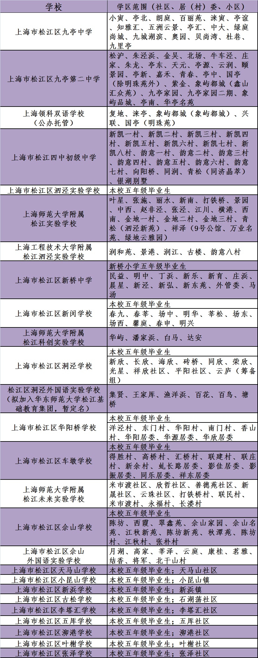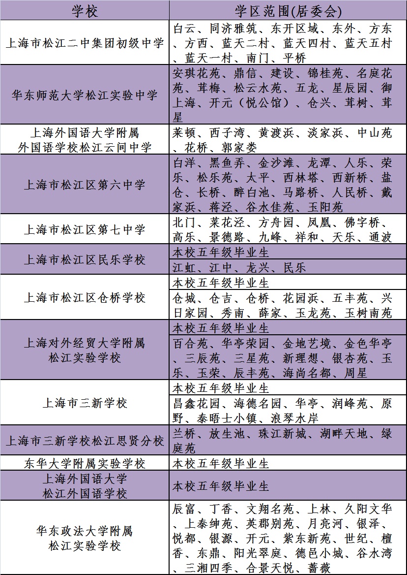 小升初的学生家长们注意啦!2022年松江区公办初中对口范围公布啦!