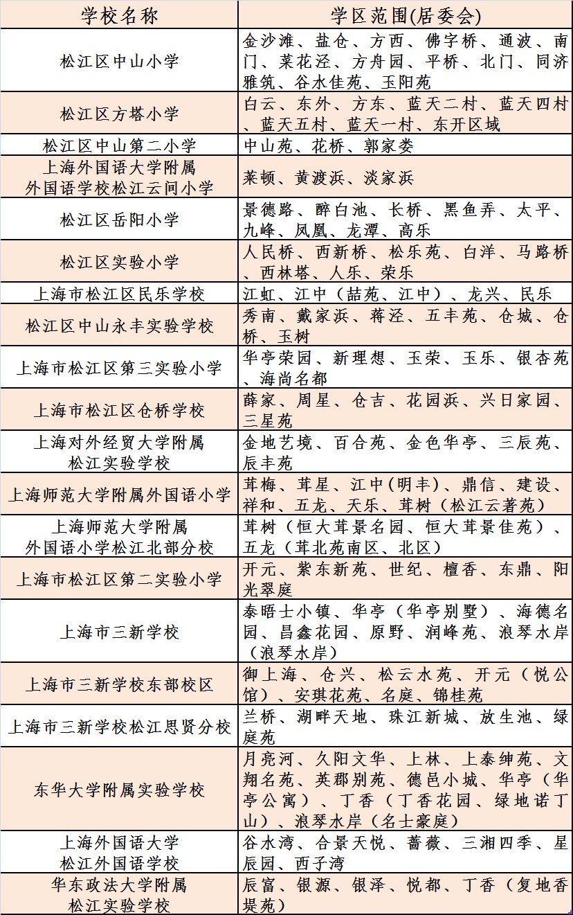 幼升小的学生家长们注意啦!2022年松江区公办小学对口范围公布啦!