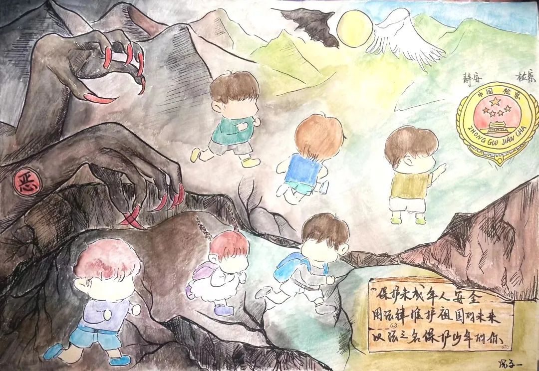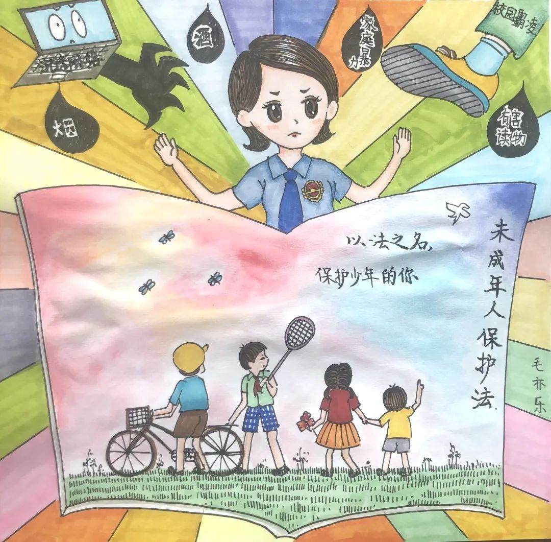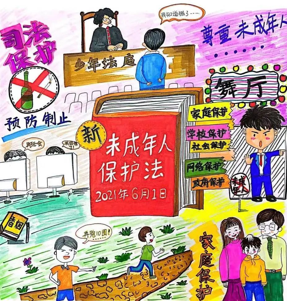 今年6月1日是新修订的《未成年人保护法》及《预防未成年人犯罪法》施行一周年。以法之名,保护少年的你!孩子们学法尊法守法用法,用画笔让心中的“法”跃然纸上。法治手绘“云展览”开展啦!