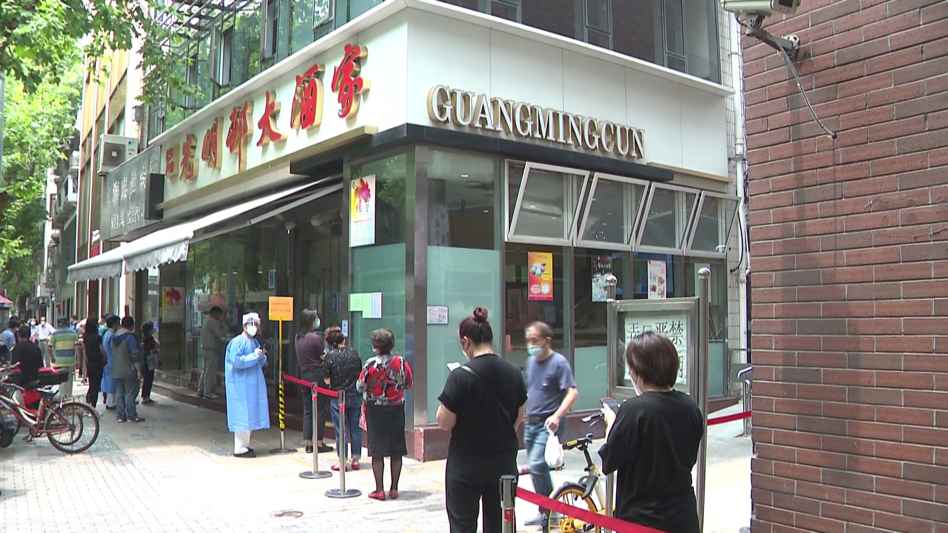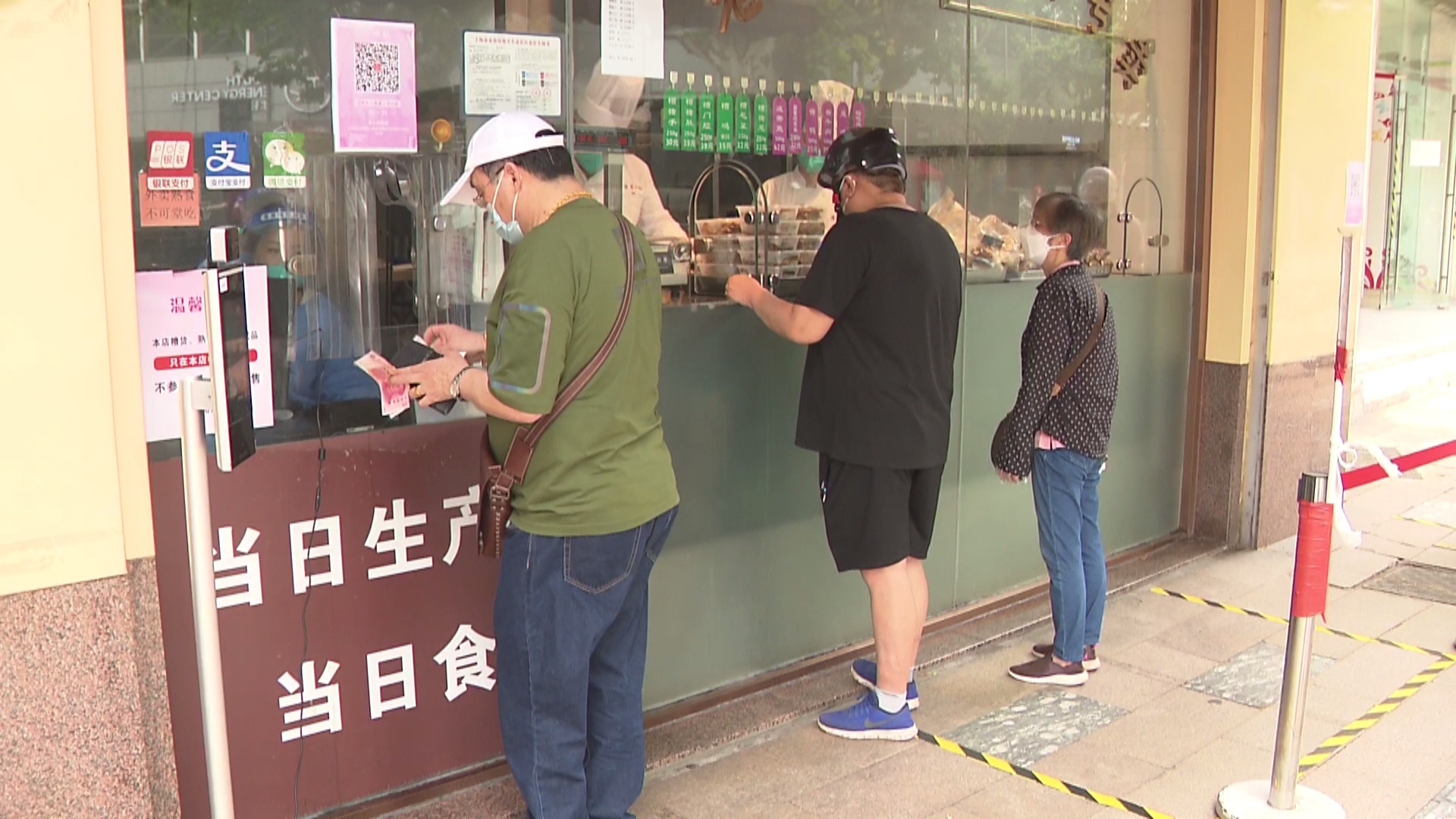 而光明邨大酒家今天也开始恢复线下营业。点心窗口和熟食窗口各排成了两支队伍。商家手持移动数字哨兵对每位顾客进行扫码。不少市民也都是一买好几样。“买些熟菜,买些月饼。”一位提着大包小包的市民告诉记者:“我就住在附近的,路过看到刚刚开,就买了很多。也不容易,都不容易……”