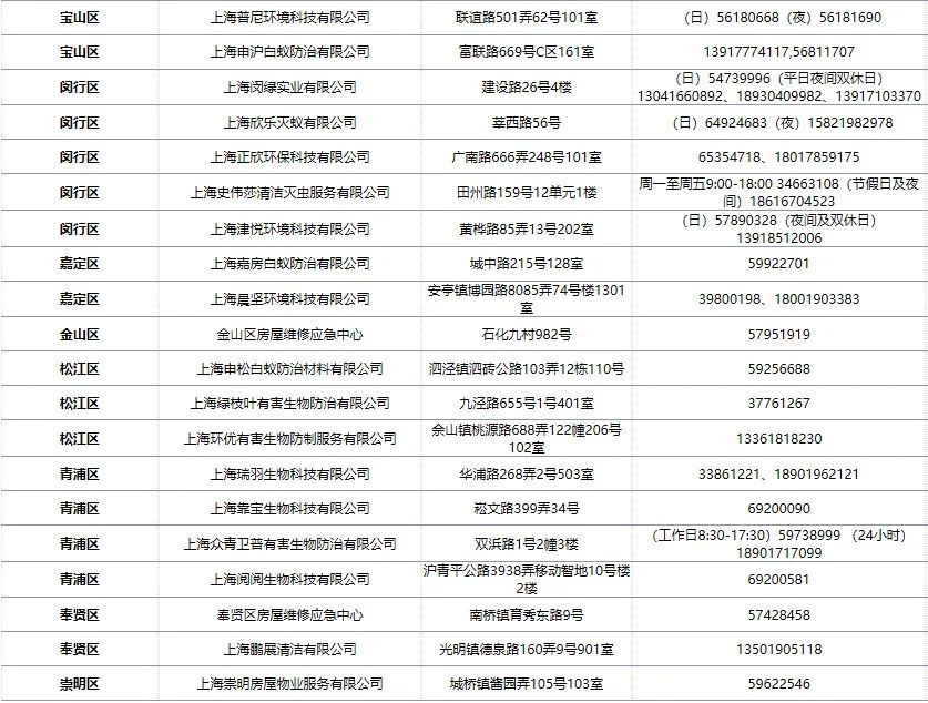 上海54家正规白蚁防治机构名单出炉