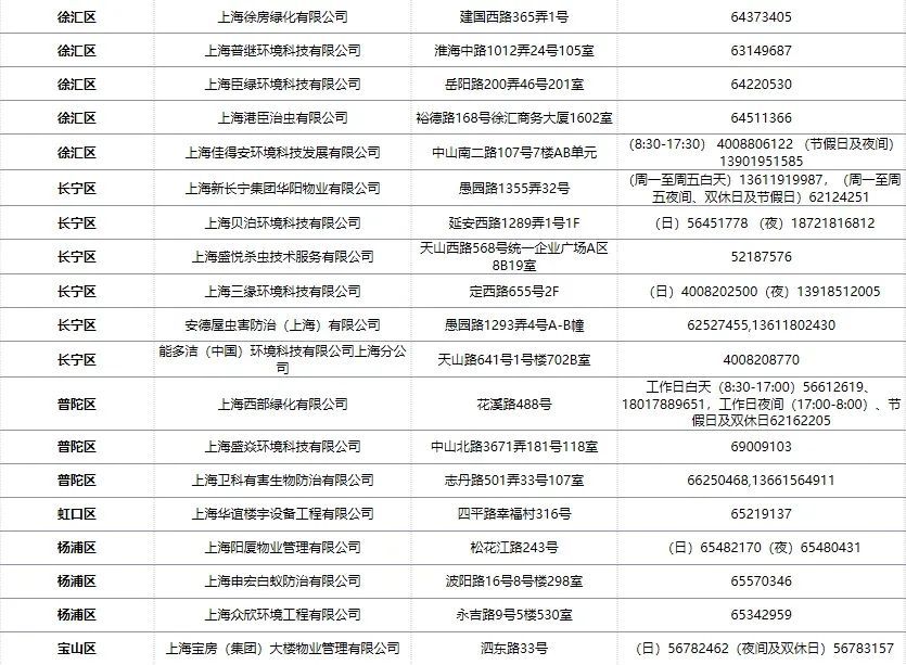 近期,上海“随申办”、住宅物业网以及上海物业微信公众号上公布54家白蚁防治单位联系方式、收费标准,方便居民线上、线下寻找白蚁防治企业,了解防治知识,若市民们一旦发现疑似白蚁活动迹象,可拨打962121热线求助。