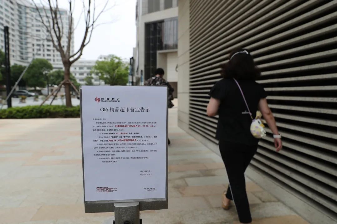 5月30日,徐汇区首家商场港汇恒隆广场部分商户复工。Olé精品超市线下已恢复开放一段时间,无需预约,凭核酸阴性证明、扫描数字哨兵、佩戴好口罩及完成测温后即可进入商场;包括LOUIS VUITTON(路易威登)、翠园、醉东、港丽等多间著名商店及餐厅5月30日起提供在线购物或点餐服务。