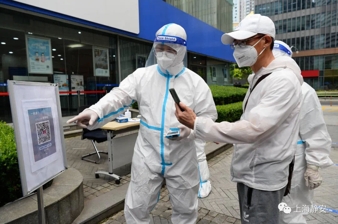作为首家在静安区恢复营业的网点,上海银行闸北支行恢复营业的第一天,记者在现场看到,入口处布设了健康核验一体机“数字哨兵”和“场所码”,市民有序扫码核验入场。门口张贴两米等候线标识,设置了客户网点外遮阳通道、排队等候线路,网点内也安排好了客户座椅等候排列,避免人员聚集。