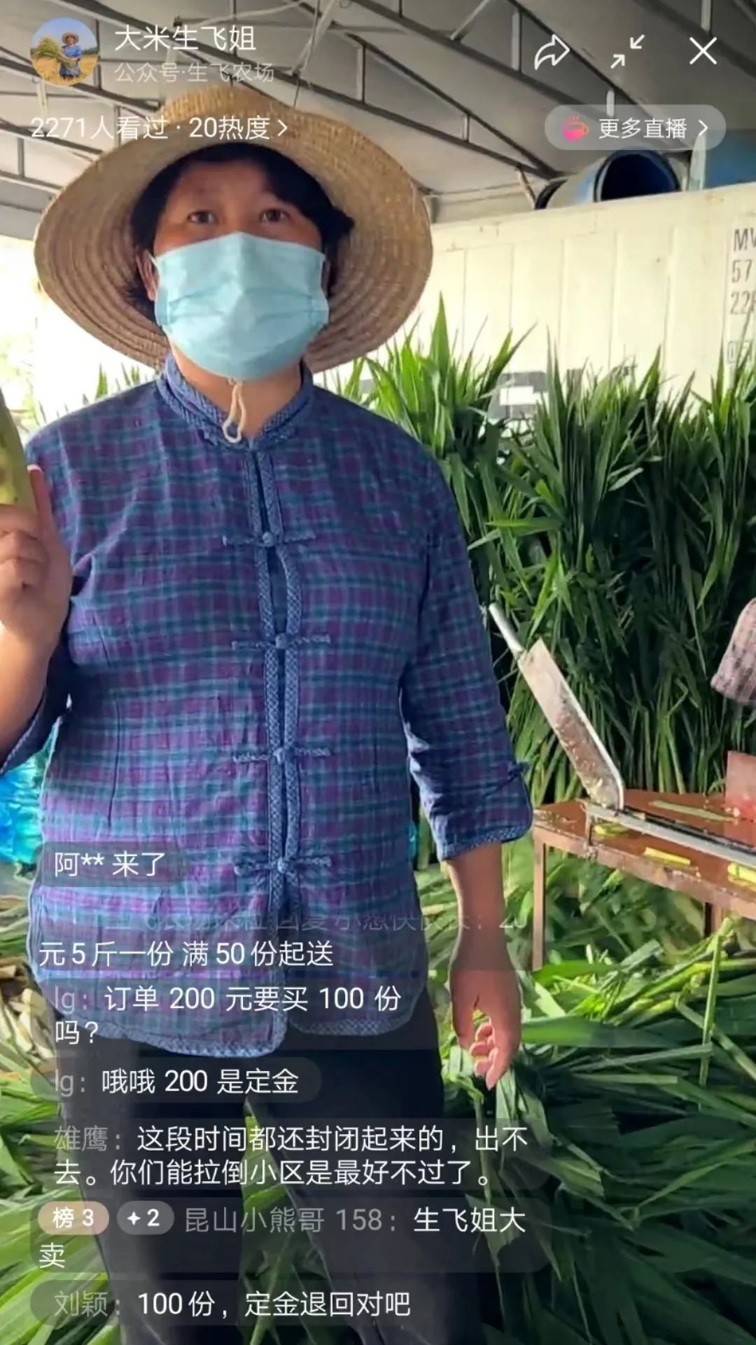 “‘水中人参’练塘茭白,白白胖胖的,被当地人称为‘白胖子’,还可以直接生吃。”说着,生飞姐拿着手中的生茭白咬上一口,“味道非常鲜美,真的可以生吃啊!”这是浦东那家庭农场主黄生飞在疫情期间通过视频号“大米生飞姐”发起的第12场助农直播。主播“生飞姐”对于助农直播已经驾轻就熟,在2个小时的直播中,“生飞姐”带着网络另一端的网友们,穿梭于一人多高的茭白田、现场展示、亲自试吃、卖力吆喝,以多种方式进行互动活动,吸引大批网友留言互动、下单购买。