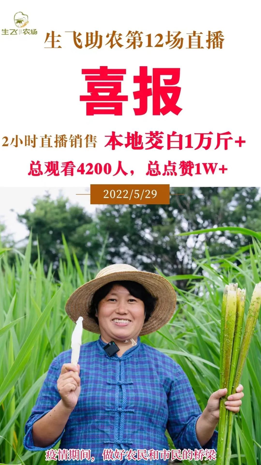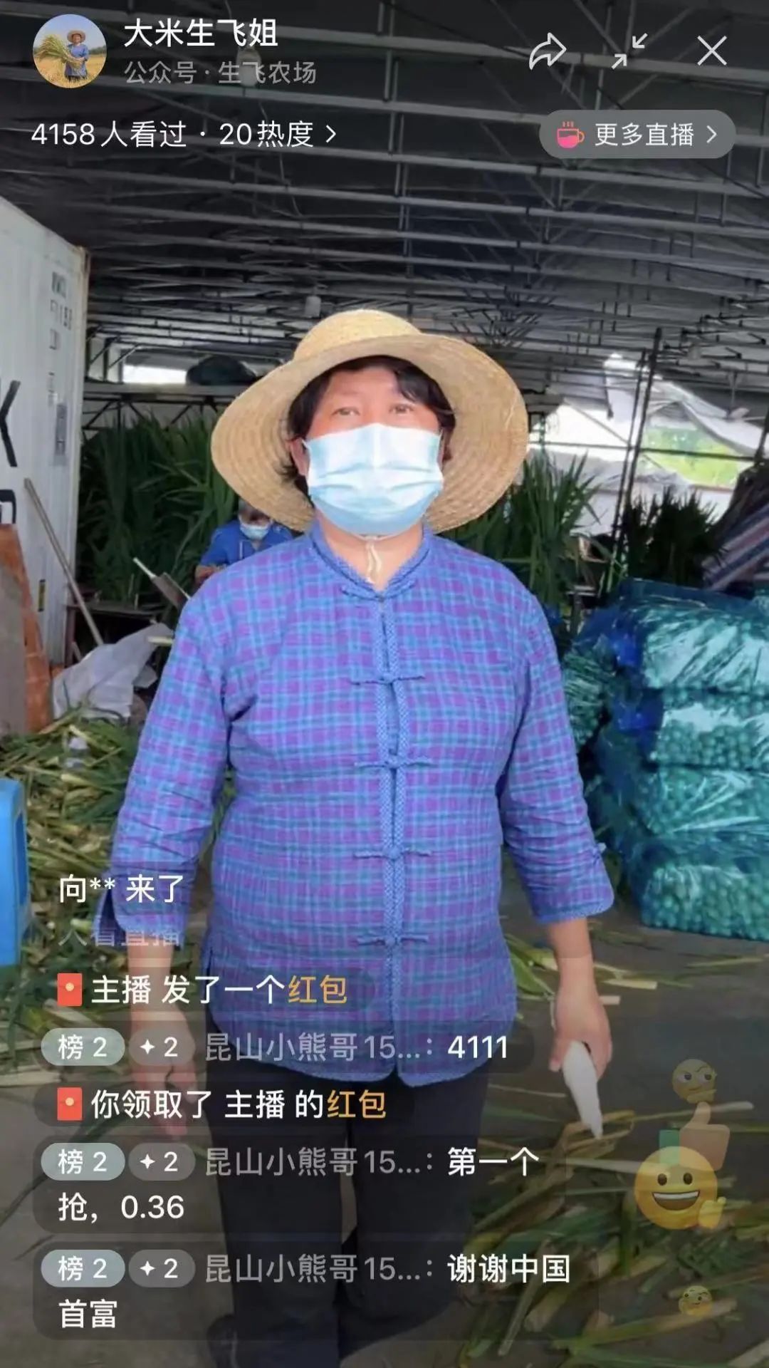 5月29日下午,冒着淅淅沥沥的春雨,生飞姐一行驱车来到青浦区练塘镇联农村,通过在视频号“大米生飞姐”直播带货的方式,帮助当地茭农销售练塘茭白。在短短2个多小时的直播活动中,在线人数达到4200多人,点赞过万,据不完全统计,通过直播活动当天,订购的练塘茭白超一万多斤,之后,传播效应仍在持续发酵中。