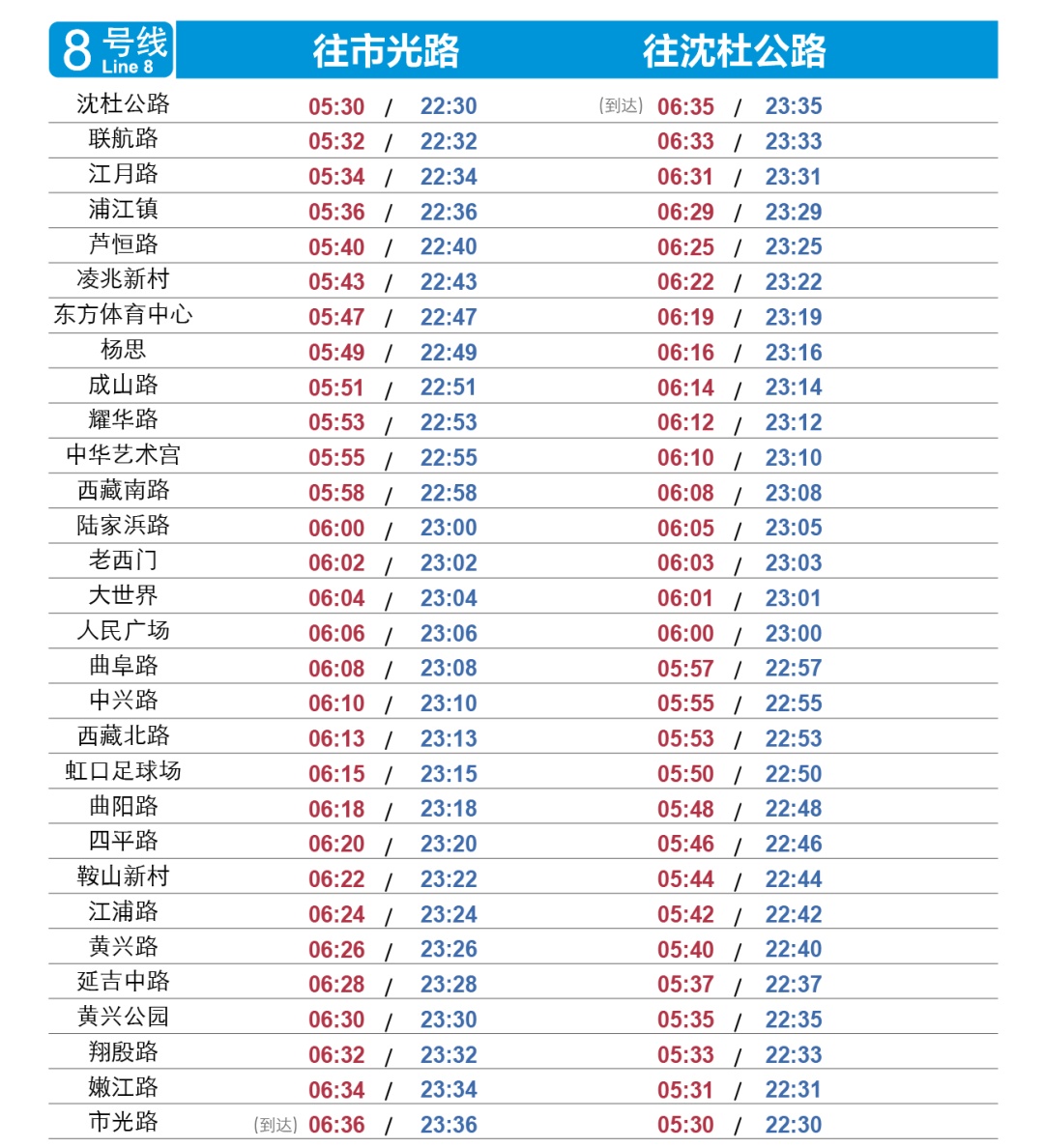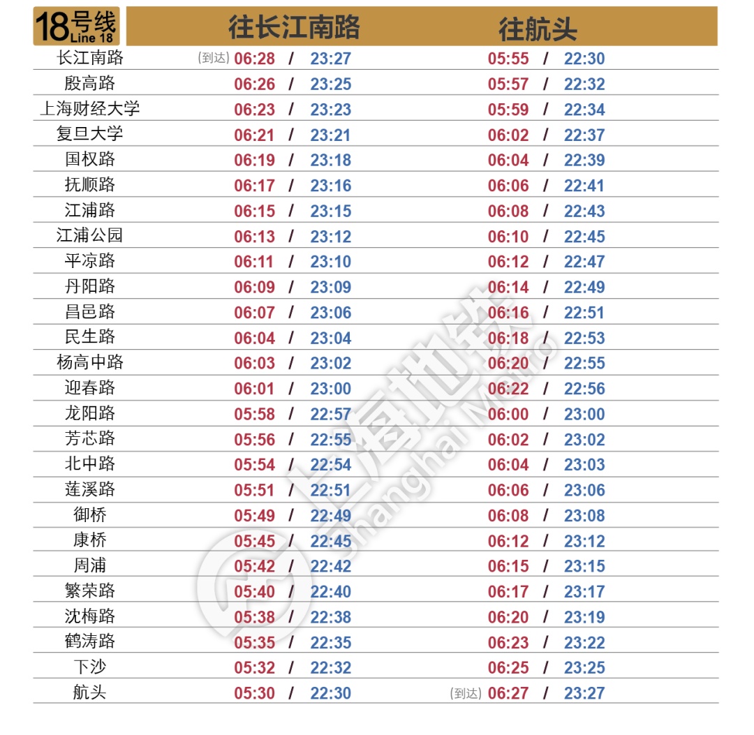 全网首末班车时刻表也随之更新