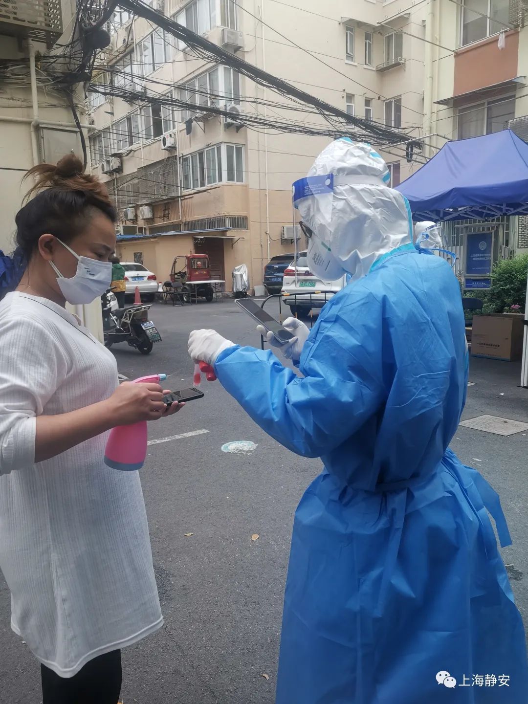 ■夏梦蝶在扫核酸检测二维码